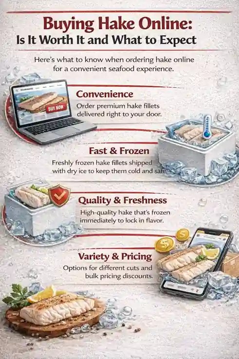 For chefs and experienced buyers, buying hake online is worth it only when the seller controls freshness from catch to delivery. High-quality online hake is typically blast-frozen or packed under strict cold-chain conditions within hours of harvest—often preserving texture and flavor better than “fresh” fish that’s already spent days in transit to retail counters.