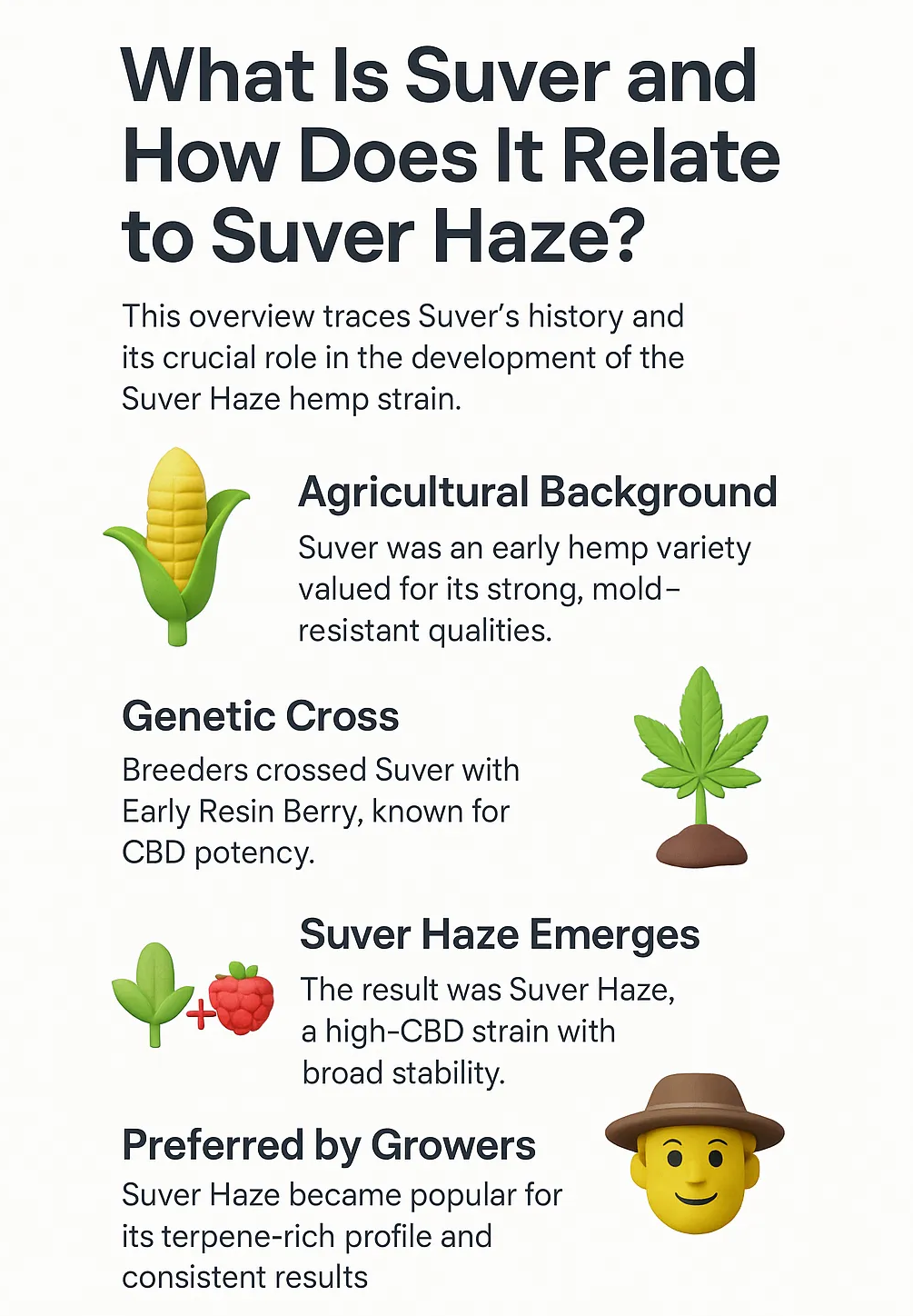 In short, Suver provided the foundation, and Suver Haze perfected the formula — transforming a sturdy agricultural strain into one of the most celebrated CBD varieties in contemporary hemp cultivation, much like how CBD gummies have evolved into a trusted, convenient way to experience the benefits of cannabidiol.